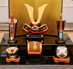 端午の節句も間近ですので、お玄関に小さな兜を飾りました♪